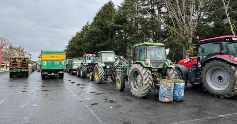 Concentración de tractores en O Toural de Xinzo con mensajes contra la PAC y Mercosur: los agricultores no descartan desplazarse a Ourense tras la comida.