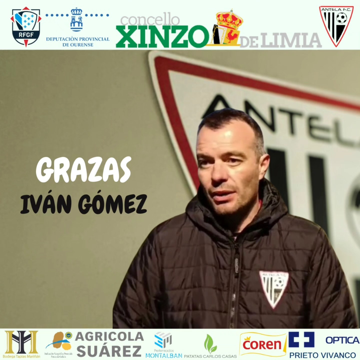 O Antela FC e o adestrador Iván Gómez separan os seus camiños. O club agradece a Gómez o seu traballo durante 2025.