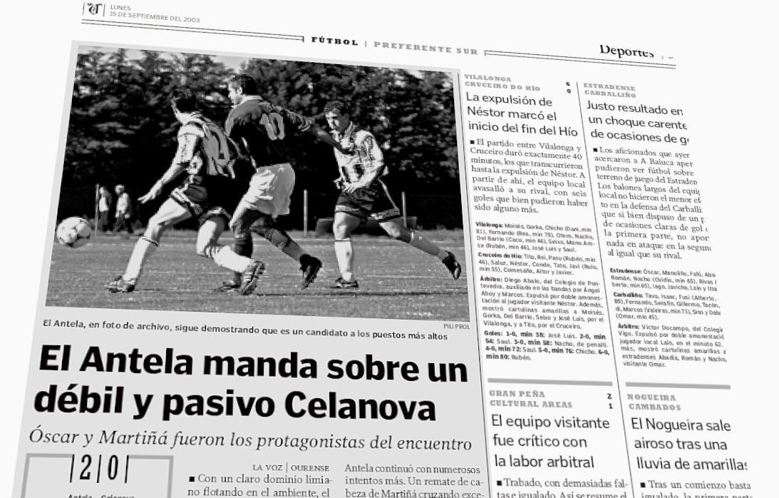 A tempada 2003/04 foi memorable para o Antela, club de Xinzo de Limia. O equipo liderou a Preferente Sur durante unha xornada e gañou a Copa Deputación.