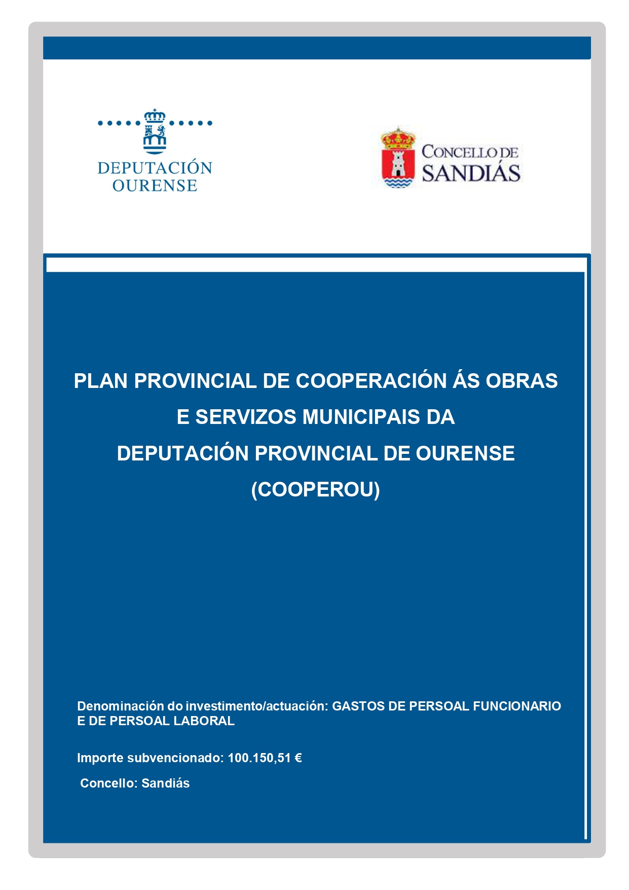 PLAN PROVINCIAL DE COOPERACIÓN ÁS OBRASE SERVIZOS MUNICIPAIS DADEPUTACIÓN PROVINCIAL DE OURENSE(COOPEROU) viernes, 24 abril 2026 - 11:55 Concello de Sandiás concelloGeneralsandiás Fonte: www.sandias.es VER NOTICIA COMPLETA Artículos Relacionados Concello de Vilar de Santos COMUNICACIÓN DE QUEIMAS AGRÍCOLAS Abr 23, 2026 Concello de Sandiás Nova cita coa Furgoteca en Sandiás na ruta do #Venres 24 de #Abril!! Abr 23, 2026 Concello de Vilar de Barrio Vilar de Barrio convoca á cidadanía a participar nunha xornada para definir o seu futuro Abr 22, 2026 Concello de Sandiás Sandiás impulsa a creatividade co inicio do III Obradoiro de Costura no Concello Abr 22, 2026