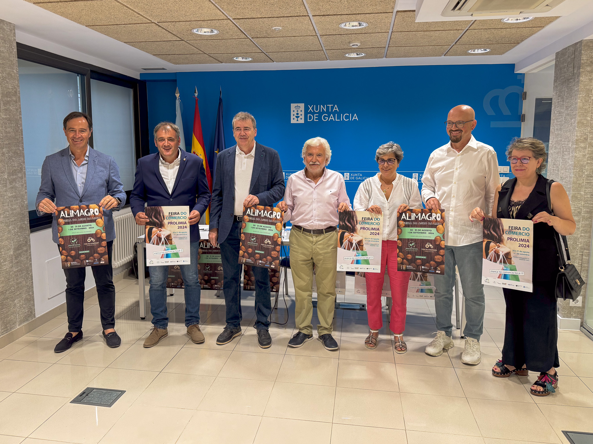 Xinzo de Limia, a 09 de agosto de 2024.  Hoxe tivo lugar a presentación oficial de ALIMAGRO, a V Feira do Agro da Limia, e da V Feira do Comercio PROLIMIA, que terán lugar os días 30 e 31 de agosto e o 1 de setembro. No acto participaron destacadas autoridades, entre elas Amador Díaz, alcalde de Xinzo de Limia; Manuel Pardo, delegado territorial da Xunta de Galicia; Rosendo Fernández, representante da Deputación Provincial; Concepción Conde, presidenta de PROLIMIA; e Máximo Gómez, director da revista Campo.