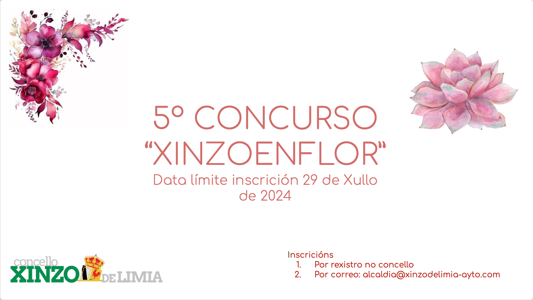 BASES + FICHA DE INSCRICIÓN: https://www.xinzodelimia.gal/media/xinzodelimia/files/2024/07/11/BASES%20Concurso%20XINZOENFLOR%202024.docx%20(1).pdf
