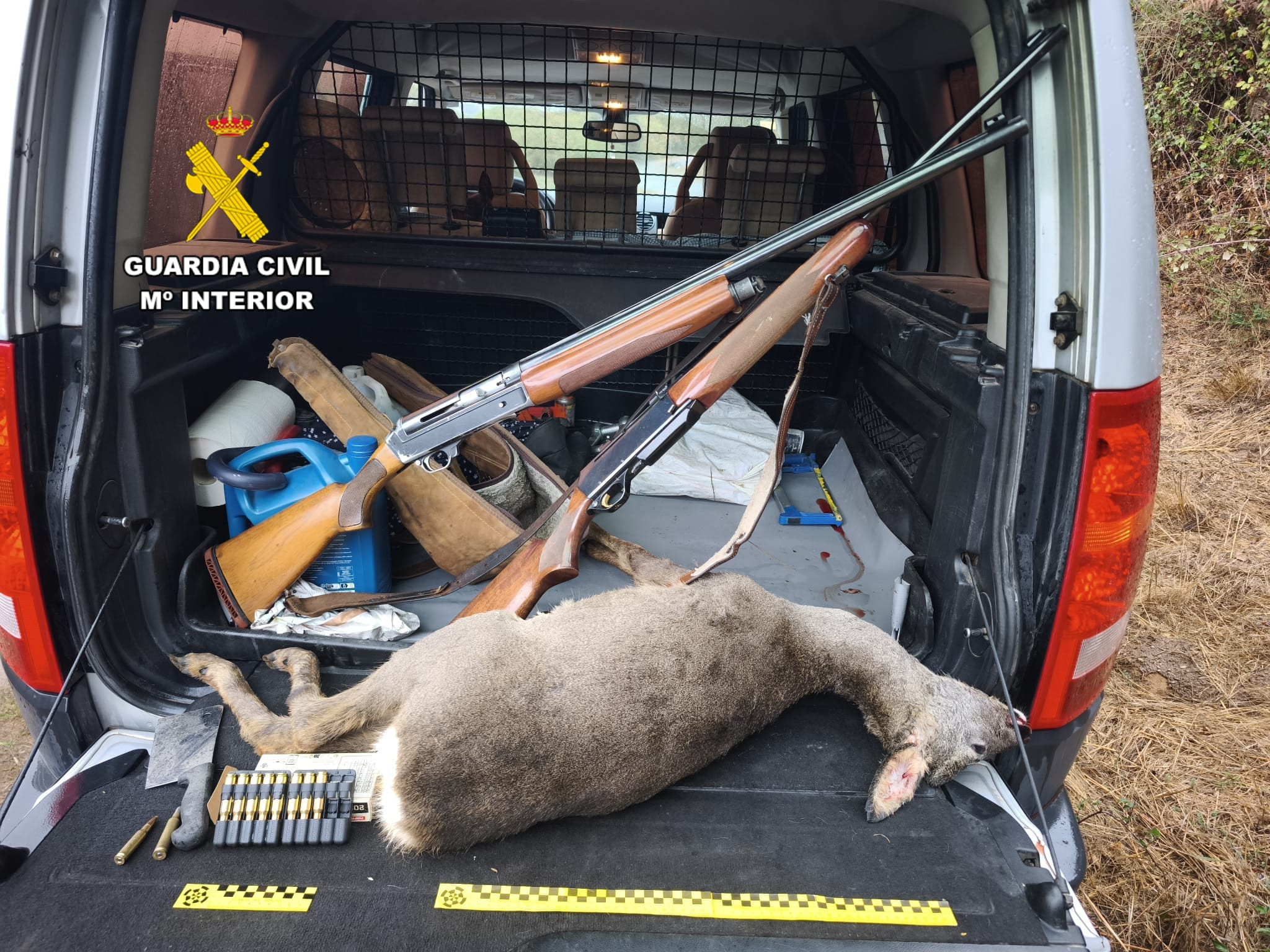 A Patrulla do Servizo de Protección da Natureza (SEPRONA) de Lobios, no marco da operación LUSKET DOCE, investigou a tres persoas pola súa presunta implicación nun delito contra a fauna. A investigación iniciouse tras localizar no interior dun vehículo o cadáver dun corzo macho (Capreolus Capreolus) e varias armas coa munición do mesmo calibre que as utilizadas no presunto abate.