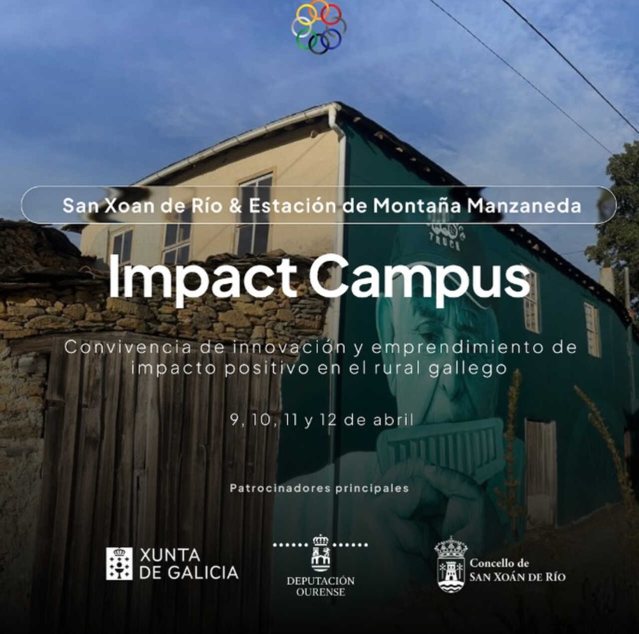 O concello de San Xoán de Río, en Ourense, será a primeira sede oficial do proxecto Impact Campus do 9 ao 12 de abril. Esta iniciativa de innovación social reunirá a máis de 100 líderes de diversos ámbitos para deseñar solucións prácticas e sostibles ao reto demográfico en contornos de menor poboación.