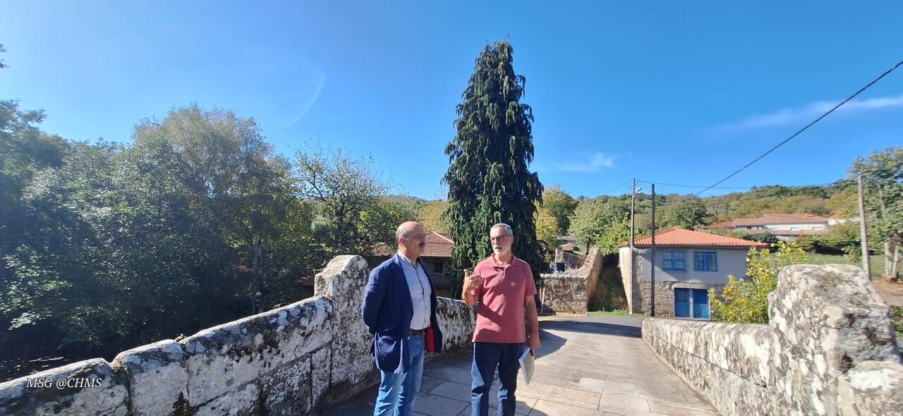 O presidente da Confederación Hidrográfica do Miño-Sil (CHMS), José Antonio Quiroga, e o alcalde de Vilar de Barrio, Manuel Conde, inspeccionaron as obras de saneamento que o organismo está a realizar no concello ourensán.