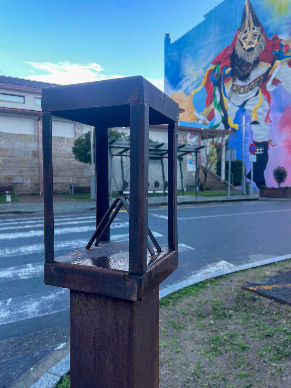 A estrutura foi deseñada para indicar a veciños e turistas o encadre idóneo para capturar a obra artística na súa totalidade, solucionando as dificultades de perspectiva que ás veces presenta a rúa. Segundo o goberno local, esta actuación responde á observación directa do fluxo de visitantes, xa que este espazo consolidouse como un dos escenarios máis fotografados da vila. O obxectivo é facilitar a toma de imaxes de calidade para que a marca Xinzo e o seu Entroido cheguen máis lonxe a través das publicacións dixitais dos usuarios.