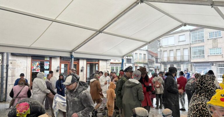 A cerimonia oficial comezou pasada as cinco da tarde, cando un carro cargado de fariña desatou o caos festivo no centro da praza. Malia o frío e o vento, a chuvia remitiu co paso das horas, deixando unha tarde ideal para dar a benvida ao mes máis esperado do calendario e ao Entroido.