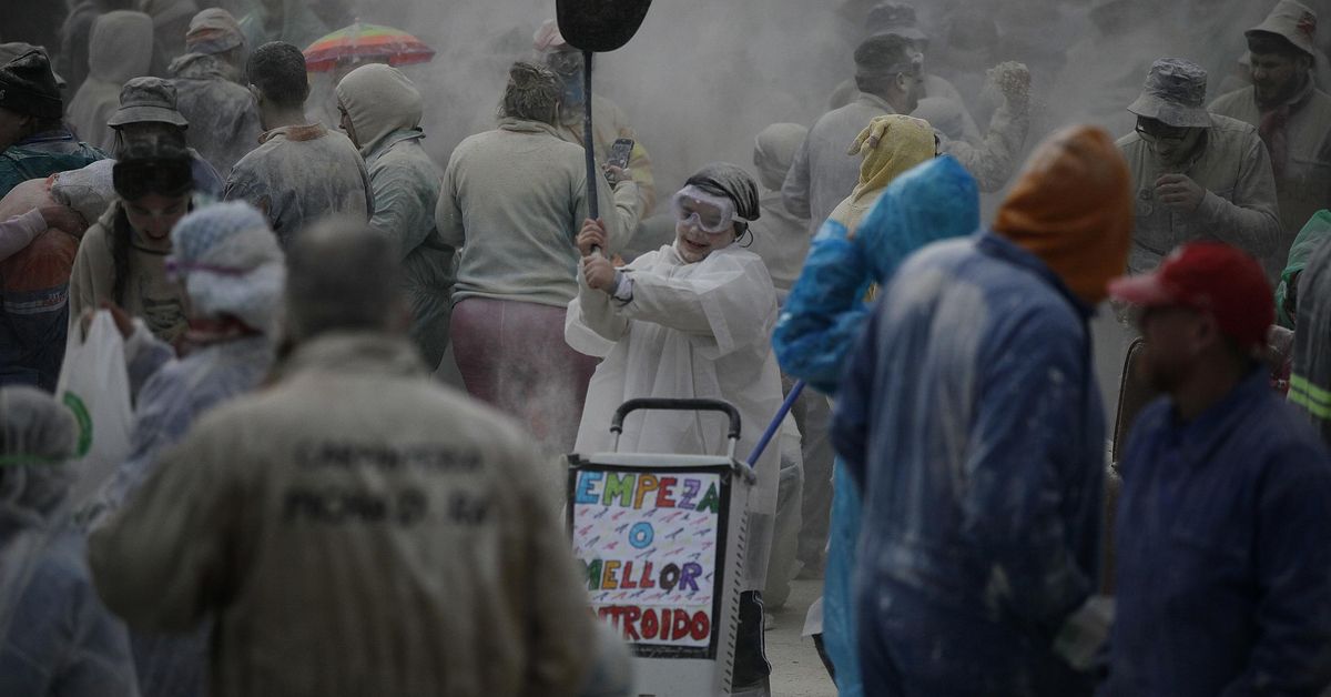 Xinzo de Limia deu hoxe o pistoletazo de saída á súa esperada festa de Entroido coa celebración do Domingo Fareleiro. A Plaza Mayor da vila encheuse de milleiros de persoas que, a pesar da chuvia intermitente, non dubidaron en participar na tradición de lanzarse fariña.