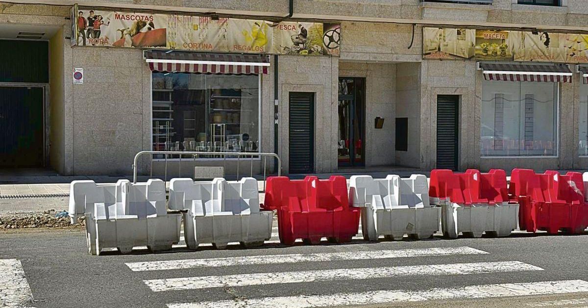 Os peóns que transitan pola Avenida de Ourense en Xinzo de Limia enfróntanse a un percorrido cambiante e cheo de obstáculos debido á situación das obras.