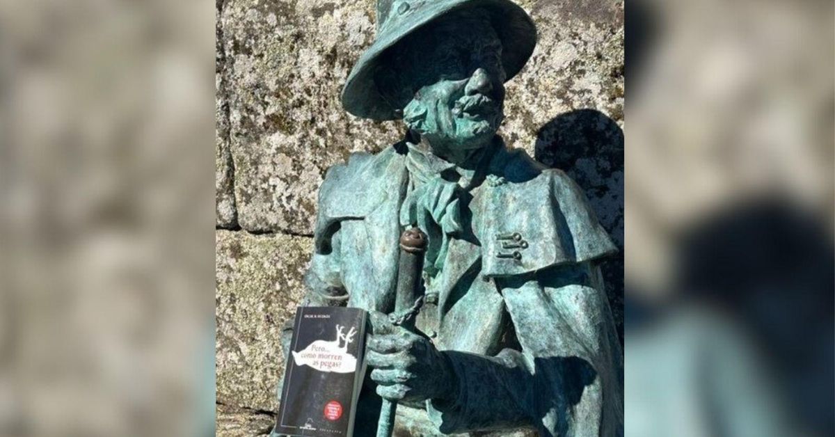 Guzmán presentoulle unha copia da súa última novela, «Pero… Como morren as pegas?».