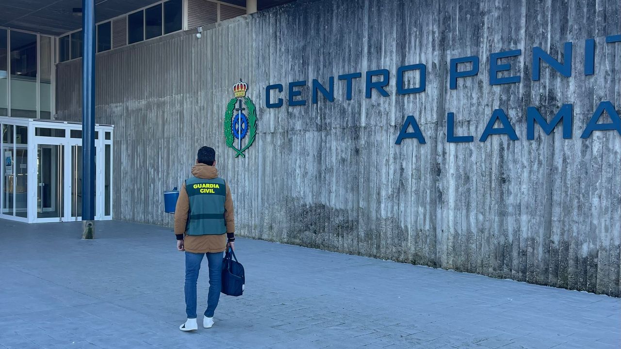 Un agente, entrando a la cárcel de A Lama para tomar declaración a los sospechosos georgianos GUARDIA CIVIL