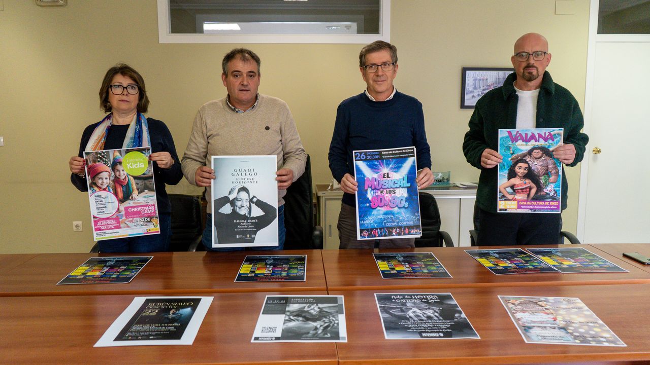 El Concello de Xinzo presentó este jueves la programación para esta Navidad. Todas las actividades serán gratuitas pero habrá una campaña solidaria para colaborar con el CEIP Ausias March de Paiporta, afectado por la dana. Habrá cuatro grandes eventos musicales. Guadi Galego actuará el 21 de diciembre a las 20.00 horas en el auditorio municipal, seguida de la presentación del trabajo de Rubén Siméo a las 20.00 horas el domingo 22 en la Igrexa Nova de Santa Mariña. Después será el musical de los años 80 y 90 el día 26 a las 20.30 horas en la Casa da Cultura. Además, el 2 de enero se proyectará el musical Vaiana a las 18.30 horas también en la Casa da Cultura.