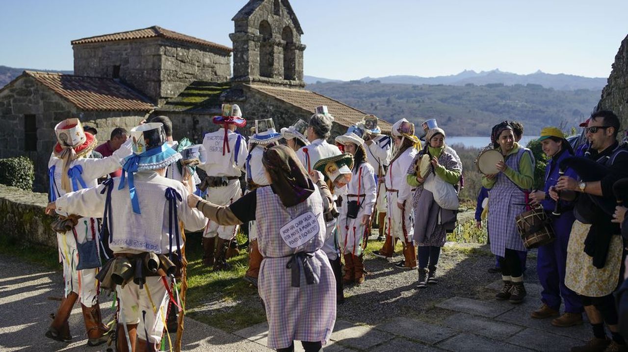 En Cualedro también tienen una cita especial este fin de semana. En la parroquia de A Xironda desfilan este sábado las mázcaras. El domingo, la fiesta se trasladará a la capitalidad. A mediodía saldrán los zarramoncalleiros, las damas y galanes de Carzoá y el castrón meco de Rebordondo, que esperarán a los feligreses para que los bendigan a la salida de misa. Seguidamente se descubrirá la escultura de la máscara típica que decora la consistorial, para anunciar que empieza la fiesta.