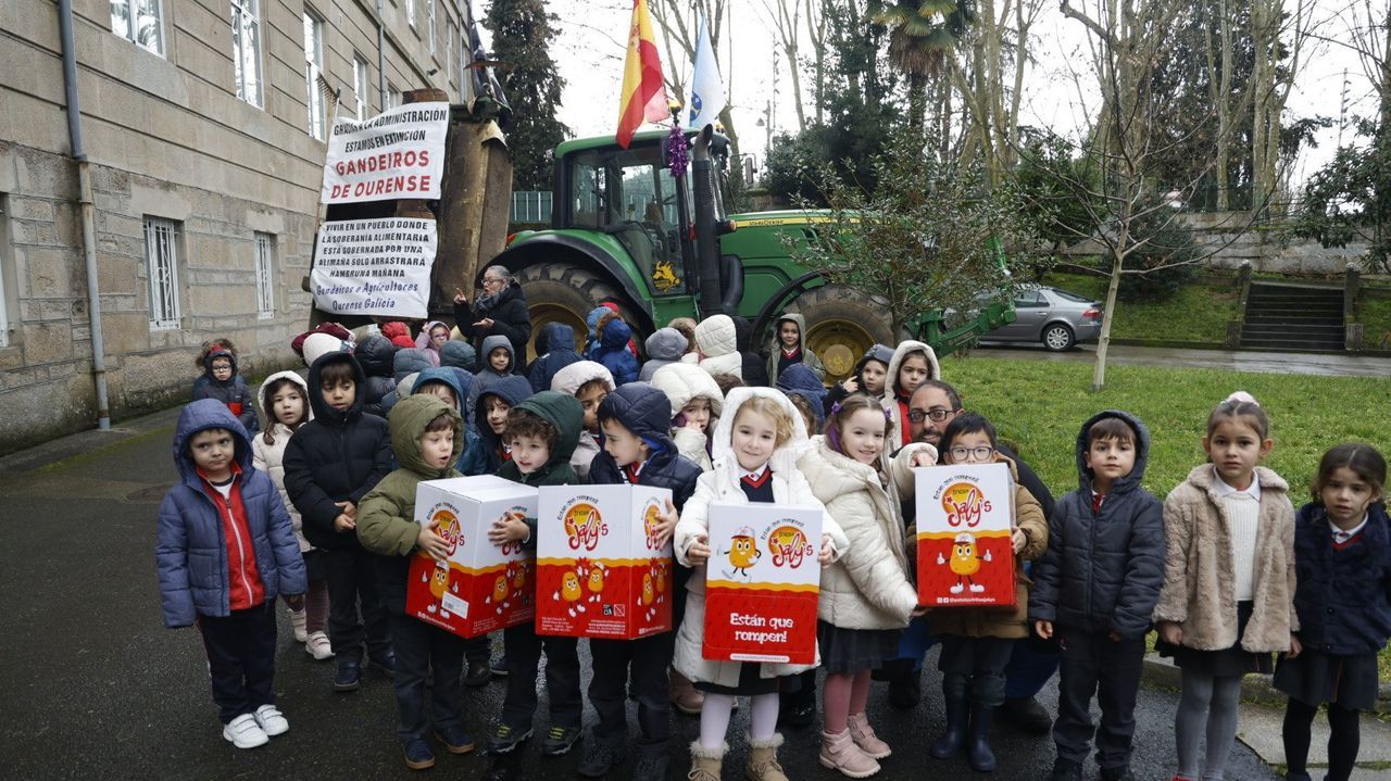Dous tractores agrícolas e os seus propietarios, os agricultores Javier Losada e Miguel Gómez, visitaron o colexio Salesianos de Ourense para explicar aos alumnos de educación infantil en que consiste a súa profesión e as raóns polas que ocupan as calles da cidade.