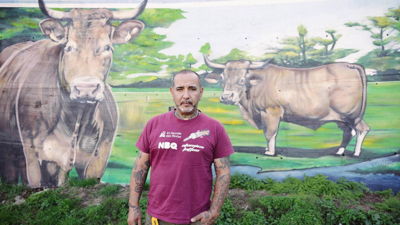 José Manuel Espín cambió la capital por la provincia de Ourense, donde trabaja haciendo murales en las fachadas de sus vecinos