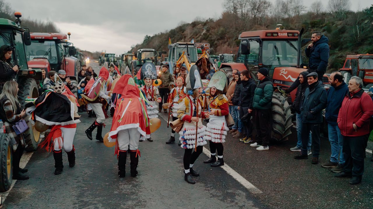 O pasado domingo, figuras tradicionais do Entroido de Xinzo de Limia e Maceda realizaron unha visita sorpresa ao campamento de protesta dos gandeiros e agricultores na autovía A-52. Unhas 15 persoas de cada entroido participaron nesta iniciativa, que busca amosar o seu apoio ao sector primario, en folga desde o pasado 29 de xaneiro.