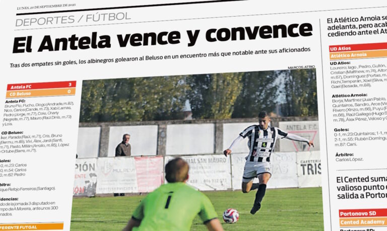O Antela gañou o seu primeiro partido, Bruno Pío segue imbatido e o equipo sobe á sexta praza na Liga.