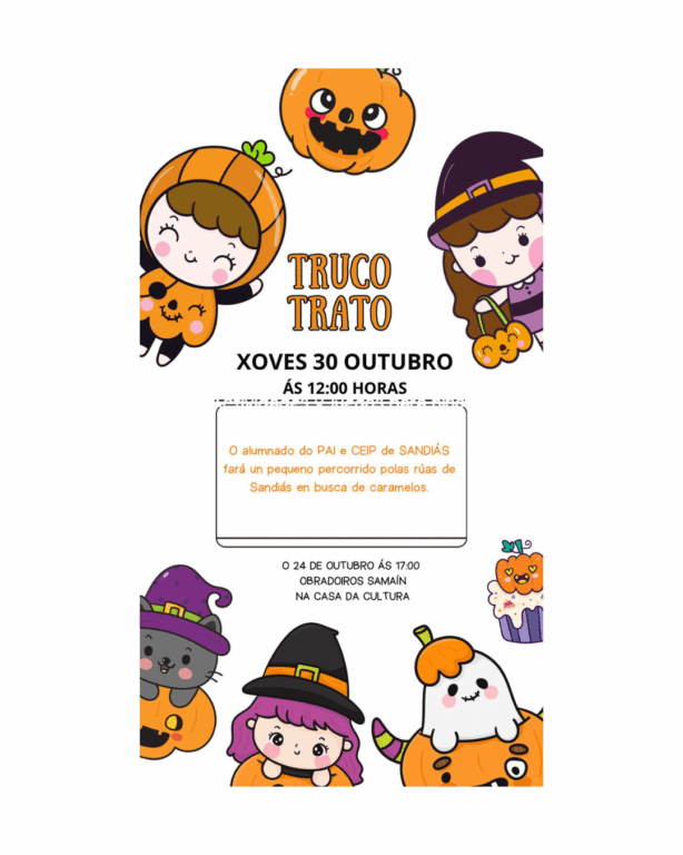 #Animádevos¡¡#Inscrición: Concello de Sandiás 🗓 Cando? O 8 de novembro⏰ A que hora? A partir 13.00 h📍Onde? Na Pista Polideportiva do Concello de Sandiás Contaremos con #animaciónmúsical para animar a festa e haberá #colchonetas gratis para os nenos e meniñas. O #prezo é de 8 euros. Os #menores de 6 anos, de balde! Xa se está #preparadotodo: castañas, […]